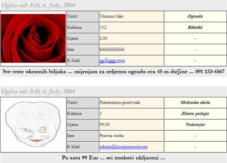 Important information about who offers or seeks goods and/or services is in the middle of the table. Individuals are represented by name and Email, while legal entities communicate via other Email . | |